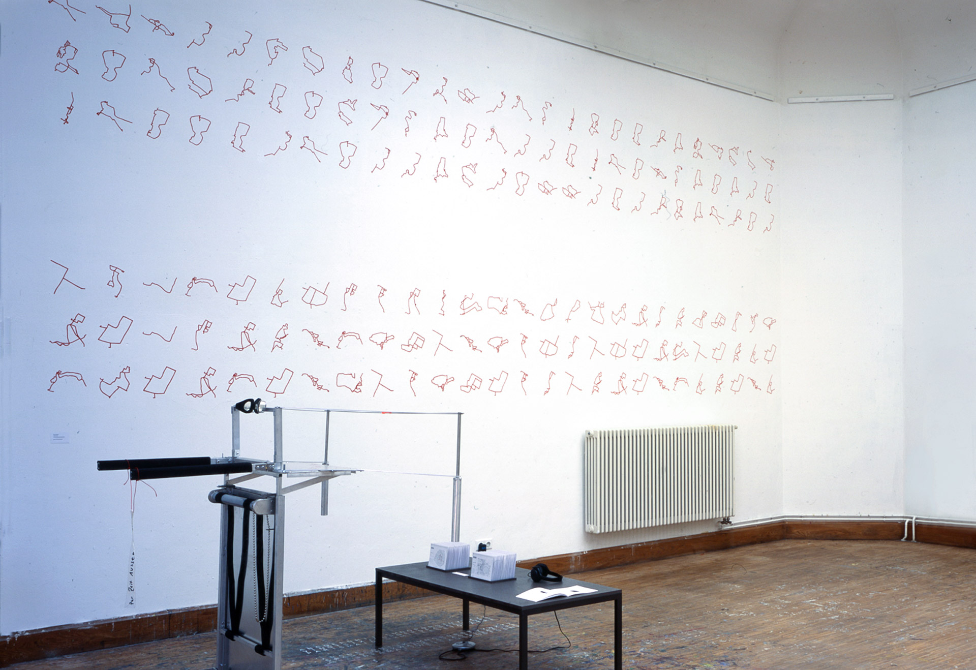 Gouache and pencil on wall, 260 x 666 cm, 26 inkjet prints 14.8 x 21 cm